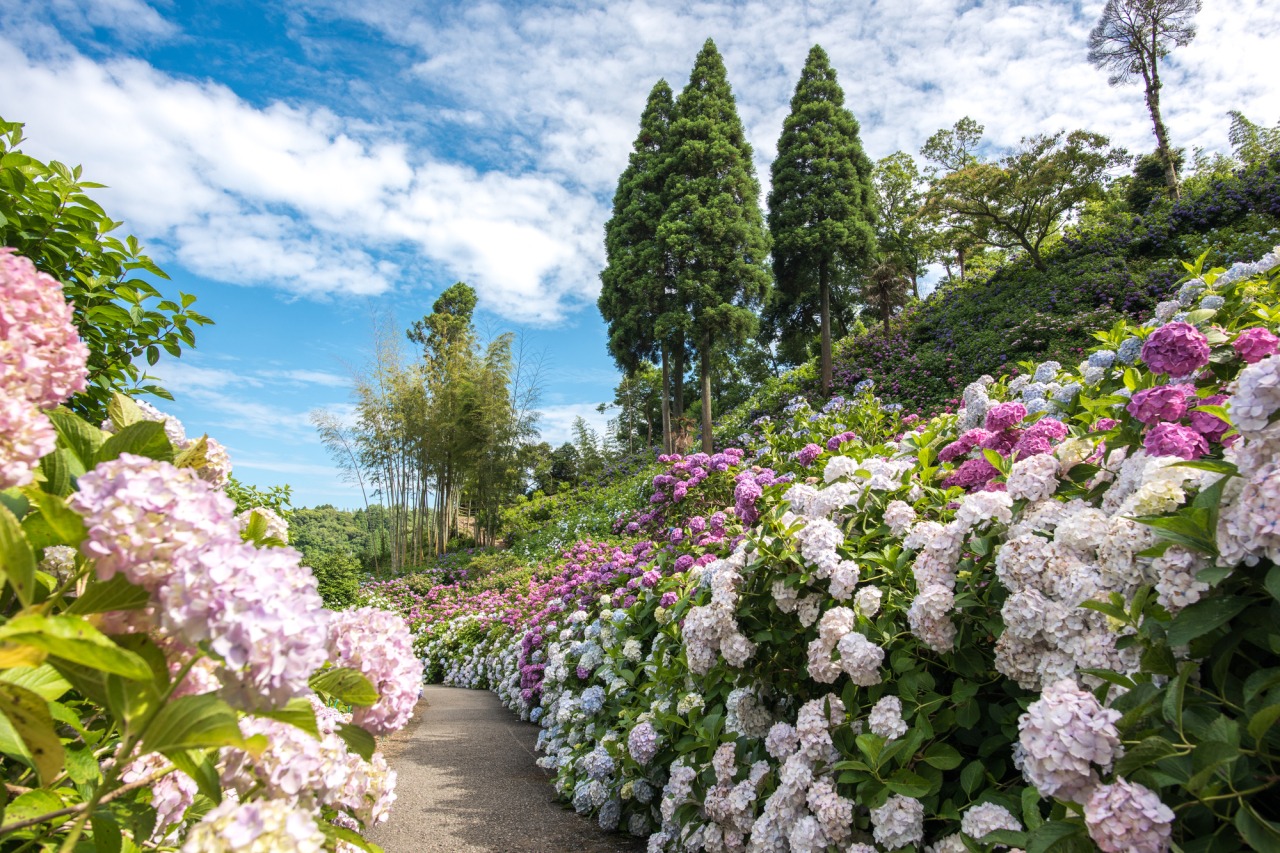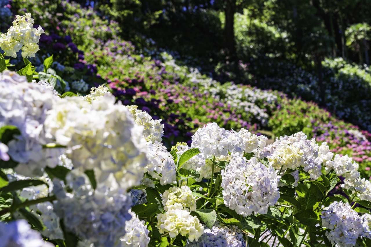 每年6月上旬至7月上旬的花季期間,約18,000平方公尺的山坡上盛開著超過250種、10,000株以上的繡球花,花色繽紛多樣,層層交織,將整片山坡妝點成壯麗的彩色花海。由於繡球花沿著山坡斜面栽種,無論從高處俯瞰,或由下往上欣賞,都能感受到滿滿的震撼感與視覺張力,視野中幾乎不受人工設施干擾,景色十分壯觀。園內各個角度皆可欣賞到全景式延展的繡球花田,是服部農園獨有的魅力。每到花季,不僅吸引縣內遊客,也有許多遠道而來的旅人造訪,已成為茂原廣受歡迎的觀光景點。園區步道多為斜坡,部分路段雨後易泥濘,建議穿著防滑、好行走的鞋款前往,以便安心漫步賞花。