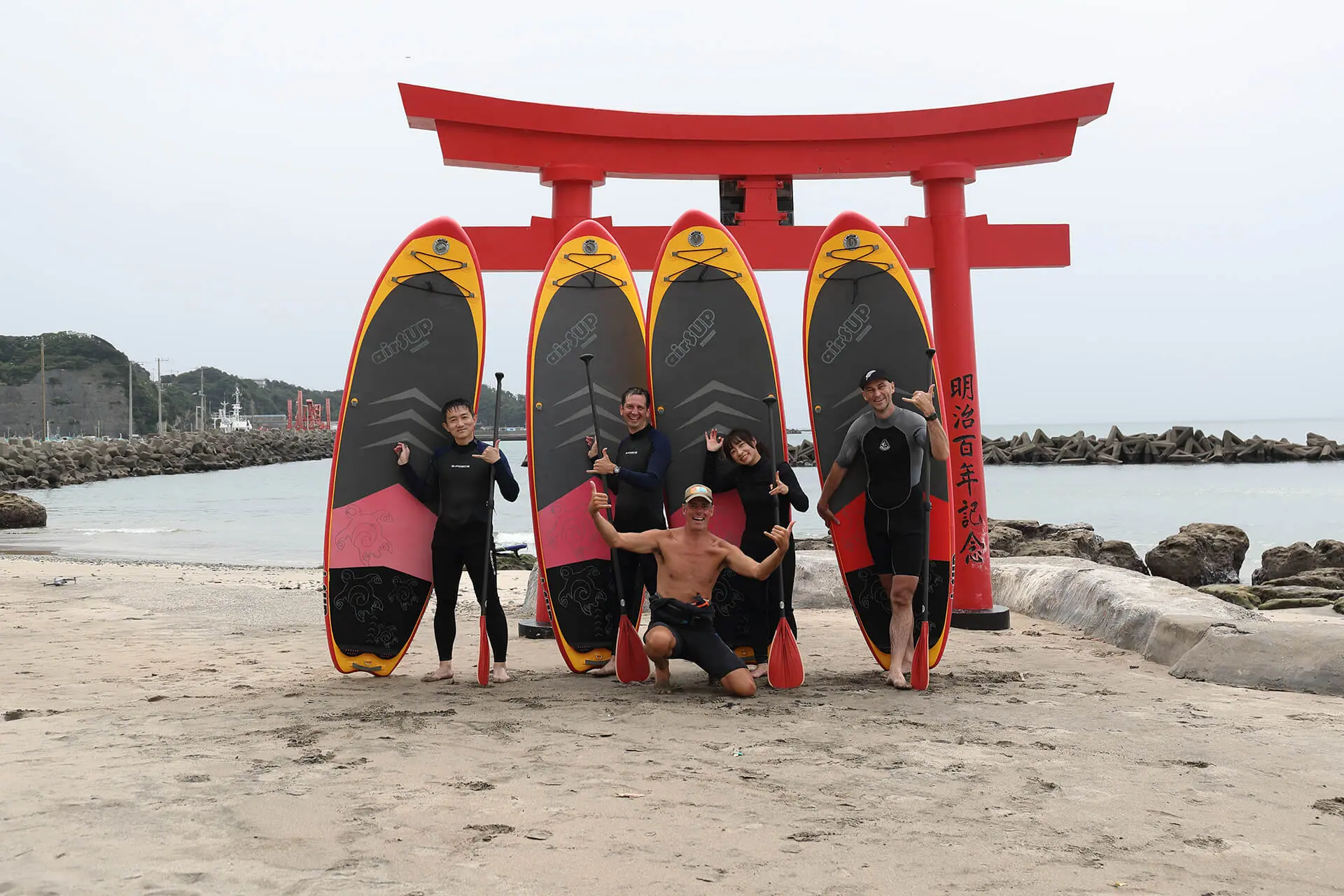 千葉縣勝浦市的部原海岸以水質清澈、視野遼闊聞名,是關東地區相當具人氣的 SUP 體驗地點。面向太平洋的開放海景,搭配自然海岸線,讓人在立槳划行時能感受到海風與湛藍海色交織的療癒氛圍。人潮相對較少,也能更專注享受與大海共處的時光。SUP 立漿比衝浪更容易學習,四季皆可體驗,練習幾次即可上手。不論是站著划、坐著或趴著前進,都能依自身節奏享受海上探索的樂趣。即使不會游泳,也有專業教練全程帶領,初次體驗也能安心參加。除了一般巡航外,近年也發展出競賽、瑜珈等多元玩法,無論大人或小孩,都能在部原海岸找到屬於自己的 SUP 樂趣。