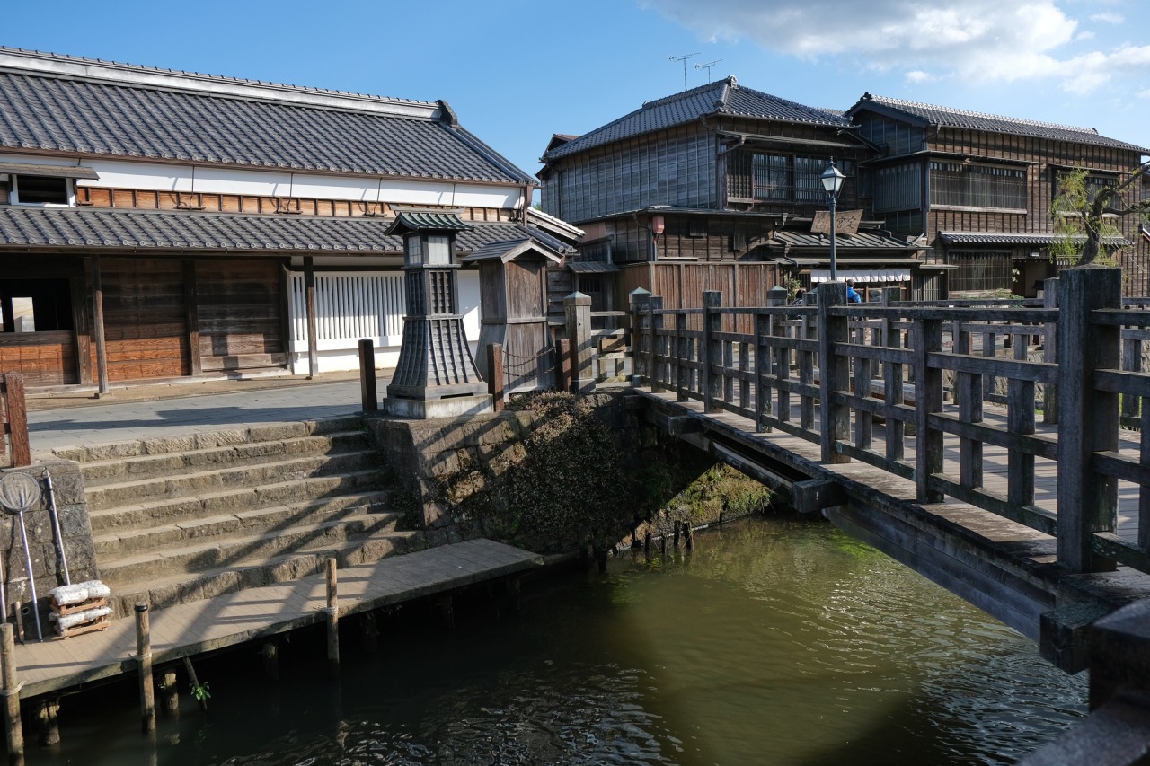 位於伊能忠敬故居前的小野川,最初建於江戶時代前期,原本作為將佐原村的水從小野川東岸引流至對岸稻田的大型引水槽使用,沿用近三百年。引水槽是引導水流的渠道,方便灌溉農田。戰前橋梁改建為混凝土結構後,仍保留橋下引水槽,水流從橋底傾瀉入川,發出嘩啦嘩啦的流水聲,深受人們喜愛。現今為觀光用途新建,設有定時傾瀉水流的設施,每隔三十分鐘傾瀉一次,重現往昔水流奔騰的壯觀景象。獨特響亮的流水聲還入選日本百大音風景,成為佐原地區象徵性的觀光景點之一。遊客可在橋上欣賞奔騰水流與古樸橋梁之美,感受江戶時代水利智慧與小野川沿岸的歷史風情,是佐原旅遊不可錯過的景點。