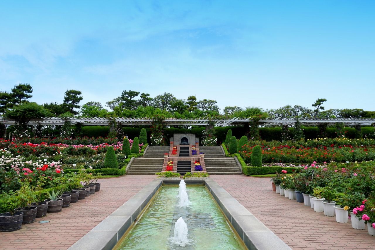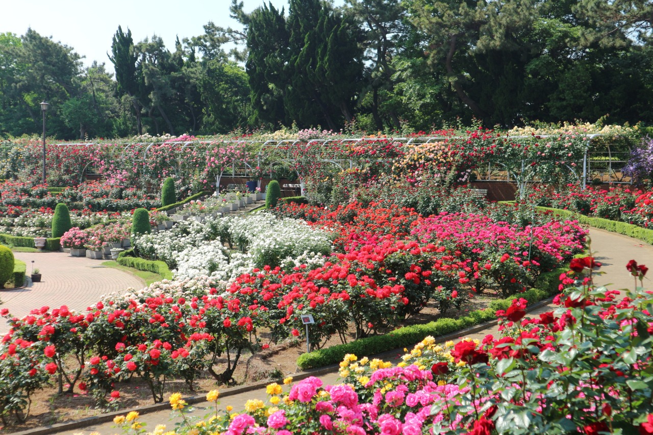 園內佔地約 12,600 平方公尺,以噴水池為中心的西式庭園中盛開著玫瑰,約 800 品種、7,500 株。每年春、秋花期皆吸引大批遊客,園中收藏眾多具歷史價值的優良品種,香氣高雅。特別規劃了皇室與王室相關品種區,如「公主・美智子」與「伊莉莎白女王」等;亦設有世界知名育種家鈴木省三的專區。長達 50 公尺的大拱門覆滿攀爬玫瑰,浪漫動人;60 公尺藤架下設休憩座椅,遊客可邊賞花邊休息。玫瑰香氣除療癒外,亦有鎮靜與舒緩壓力的作用。園區入口還立有「讀賣巨人軍發祥地」紀念碑,增添文化氣息。