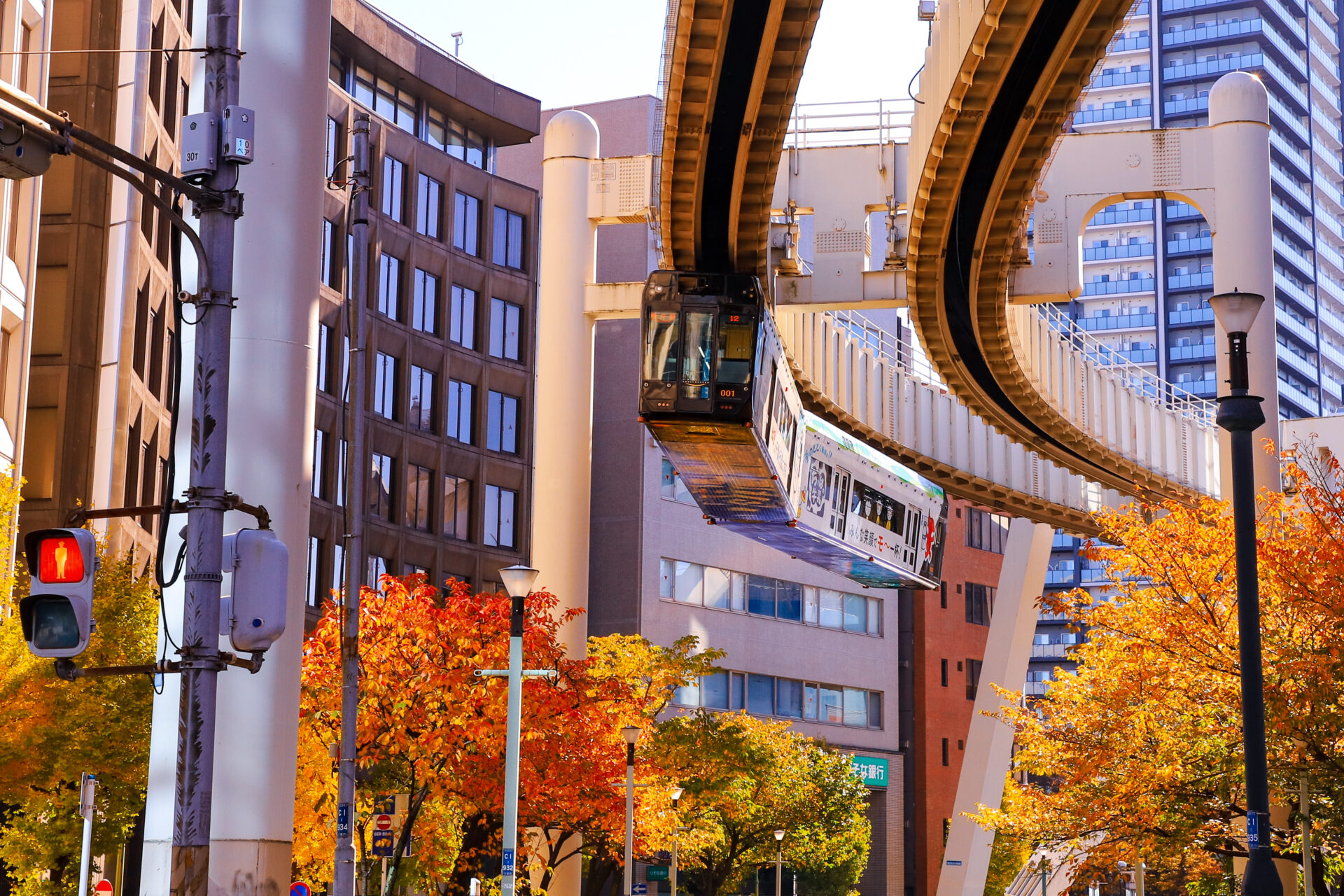 宛如空中電車的千葉單軌電車沿線,到了秋天也是賞楓的好所在。不管是乘坐電車由空中遊覽,或是從底下感受電車從楓葉中呼嘯而過的瞬間,這個帶有科幻感的都市賞楓行程,可是千葉市專屬的特別風景呢。