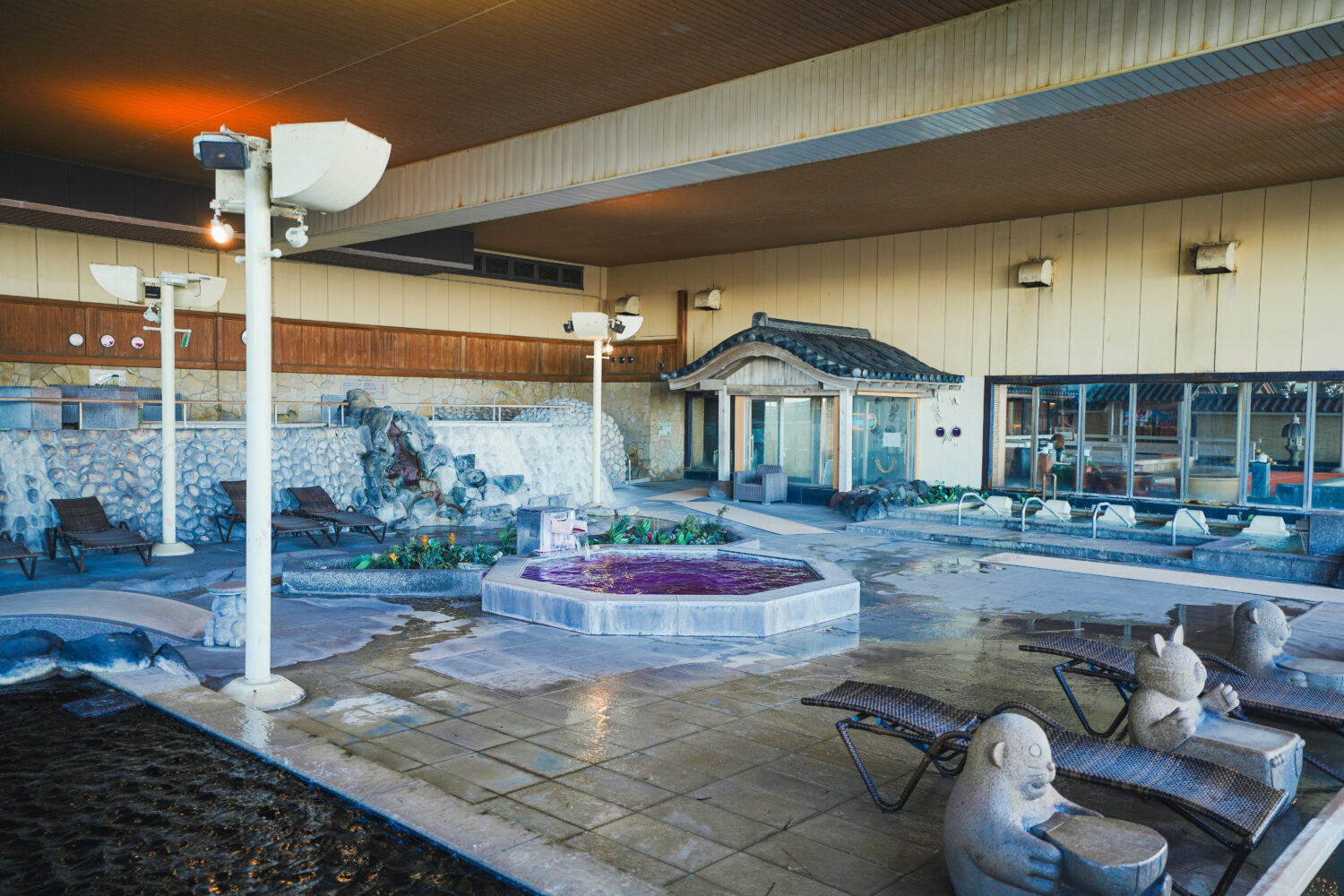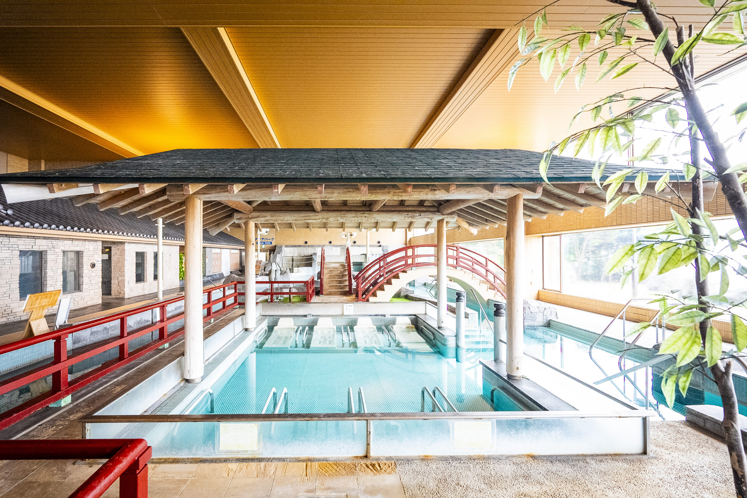 除了室內游泳池之外,還有設施豐富的戶外戲水區,同樣也是有許多兼具娛樂性的設計,幾乎可以算是個溫泉水上樂園了呢!