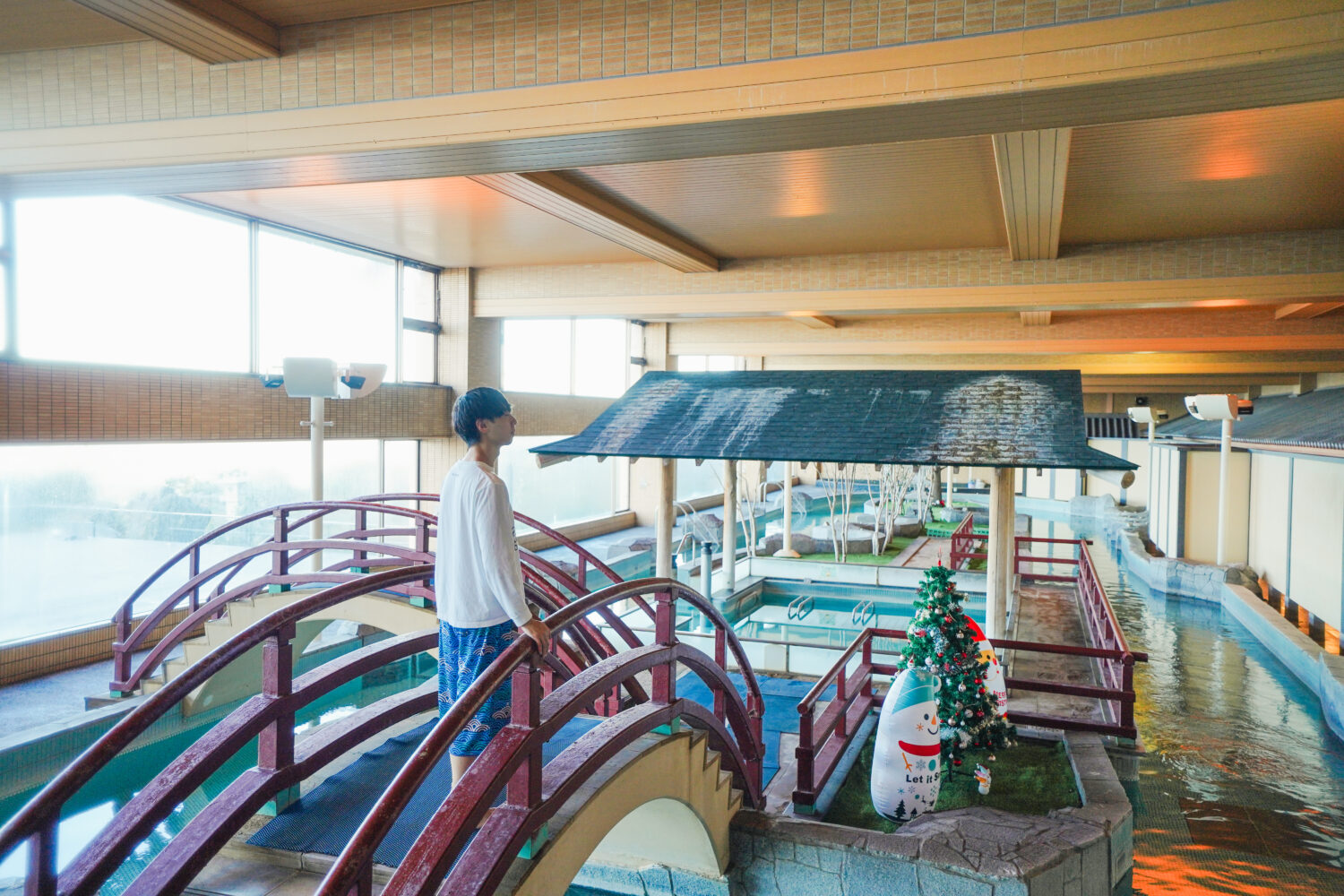 一進入龍宮之湯就被眼前的小橋流水還有眾多雕像們震懾,沿途帶有東方仙境色彩的設計跟裝飾也很獨特,可以強烈感覺得出飯店想要打造出真實版龍宮的野心,確實讓人像誤闖神仙世界一樣驚訝。