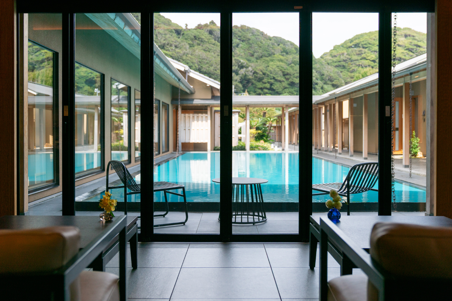 Every sightline was meticulously planned. When you sit in certain spots, the water basin in the courtyard creates a visual connection to the sea beyond, a landscaping technique refined over centuries of Japanese garden design. Behind the pool, the hills rise dramatically, creating a sense of being on the edge of both mountain and sea. Each vantage point offers a different perspective on this convergence of land and water.