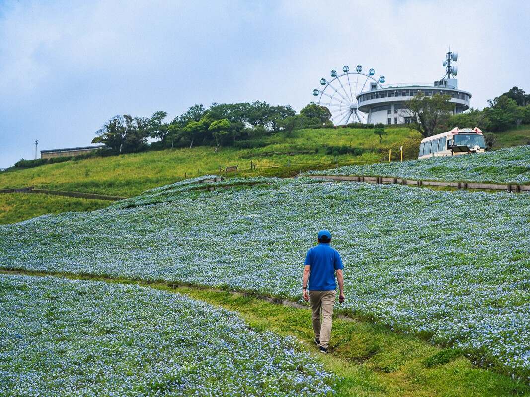 Blue Nemophila on the Ridge and a Feast at the Farm DinerThe Sheep and Their HandlersUp Close with More Friendly AnimalsFamily-Friendly HighlightsVisiting Mother FarmI’ve chased spring blooms across Japan, but few things prepared me for the expanse of blue stretching over Mother Farm’s rolling hills. My goal was simple: capture the famous nemophila fields with my camera. The sky wasn’t perfect, but the gentle haze softened the sea of baby blue flowers, and the texture of the clouds complimented the nemophila in a way that felt almost painterly.