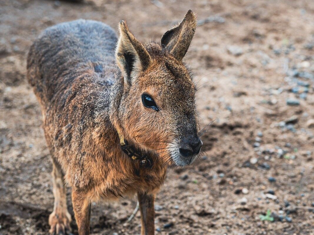Next, I wandered toward the dairy cattle area. Visitors cannot get close to them, but while the cows grazed in the distance, curious calves approached the fence to greet me as I walked around the area. Nearby, the petting zone offered a surprise lineup of small friends: goats, rabbits, and even some small Patagonian mara. I crouched beside one of the gentle rodents, tracing its coarse fur as it munched on lettuce.
