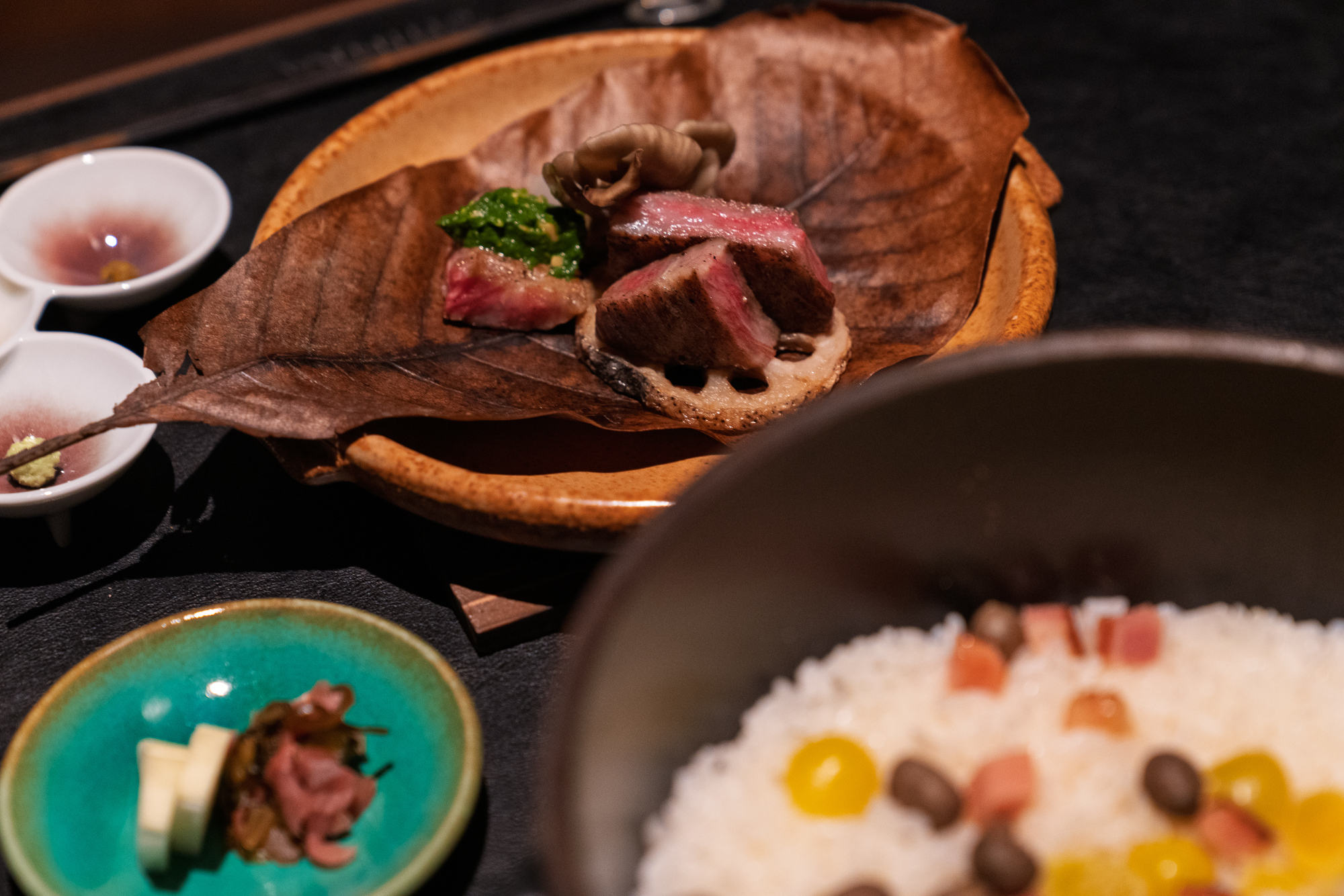 As with all high-end Japanese ryokan, Shinra takes its culinary program seriously. The kaiseki meal I had consisted of eight courses showcasing the unique position of the Yoro Valley, sandwiched between the mountains and the sea, with the menu changing monthly to follow the seasons. Standout dishes included dobin-mushi soup cooked in a clay pot with white matsutake mushroom and white fish, fresh sashimi delivered from local fishing ports, and Japanese black wagyu sirloin served with chrysanthemum sauce. Breakfast follows the traditional format with fish grilled over charcoal and rice freshly cooked in a pot. Guests in the Riverscape rooms can have breakfast delivered to their room if they prefer.