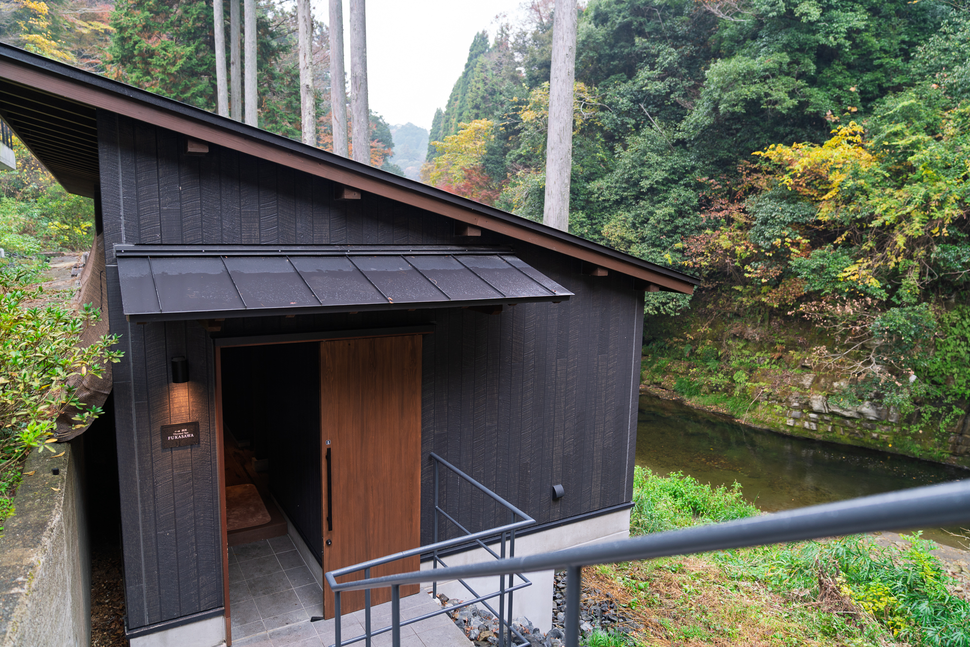 Shinra opened its doors in March 2025 along the banks of the Yoro River, built on land where nothing existed before. The location was chosen specifically for its dramatic views of the valley’s famous cliffs and the constant sound of the river below.