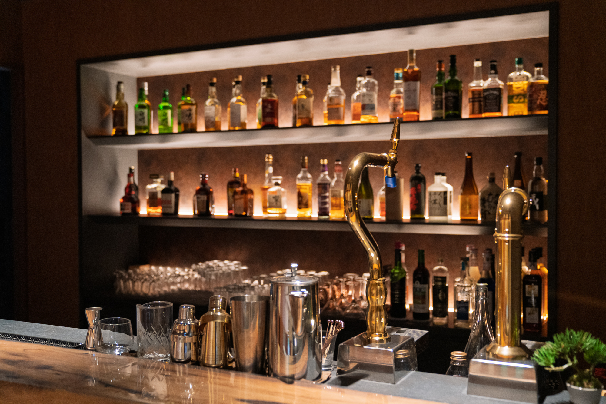 Near the entrance sits a counter with complimentary drinks throughout the evening. Guests can help themselves to local specialties rarely found outside of Chiba such as Boso Whisky, shochu distilled from the region’s famous peanuts, and draft beer. On weekends, the bar opens in the evening for those who want to extend the experience further.